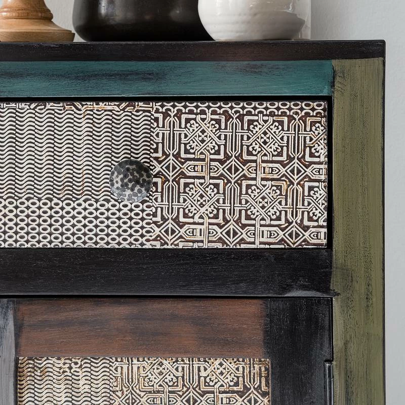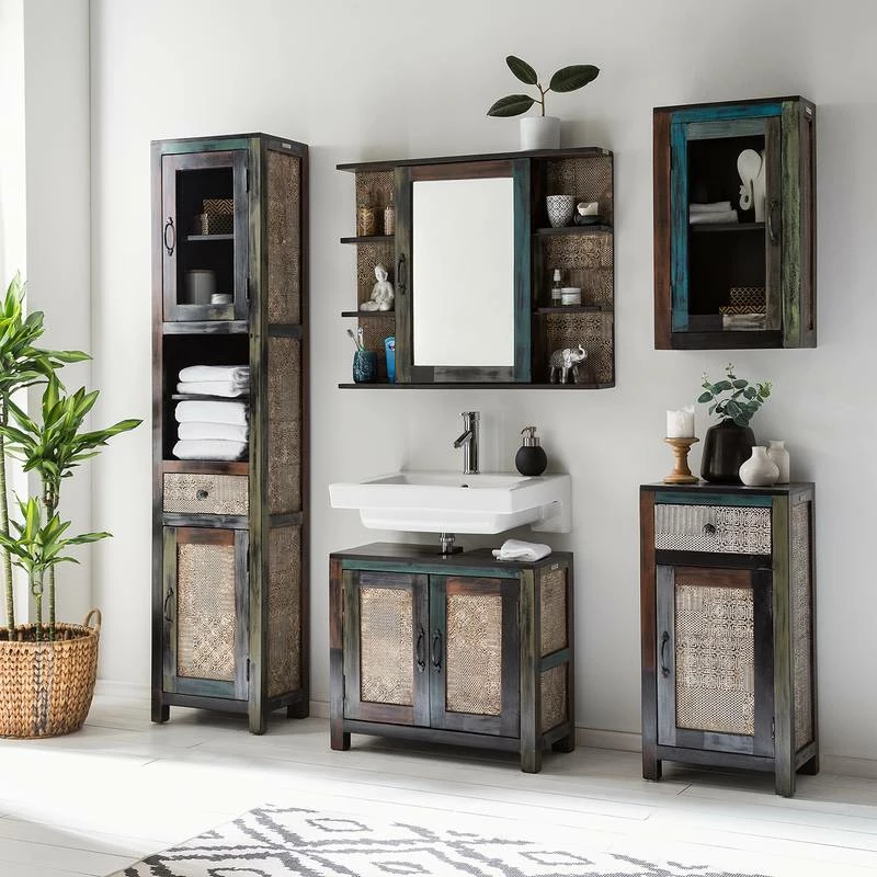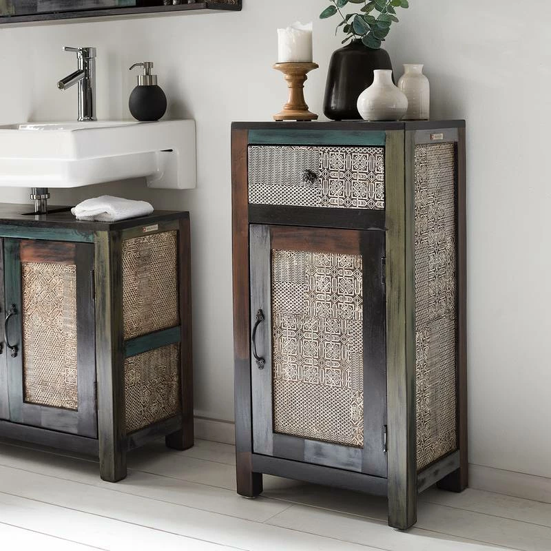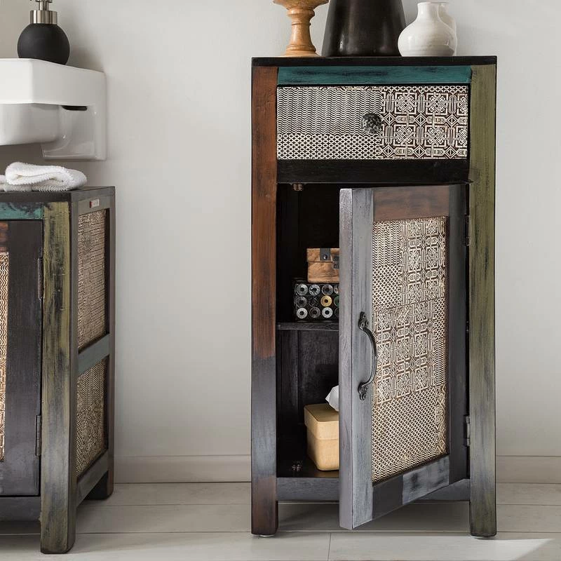 - Eléments de la façade : panneau MDF (panneau de fibres de bois de densité moyenne) avec éléments décoratifs métalliques