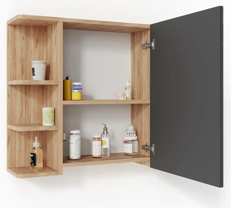 - Contenu de la livraison : • 1x meuble avec miroir Le décor n’est pas inclus