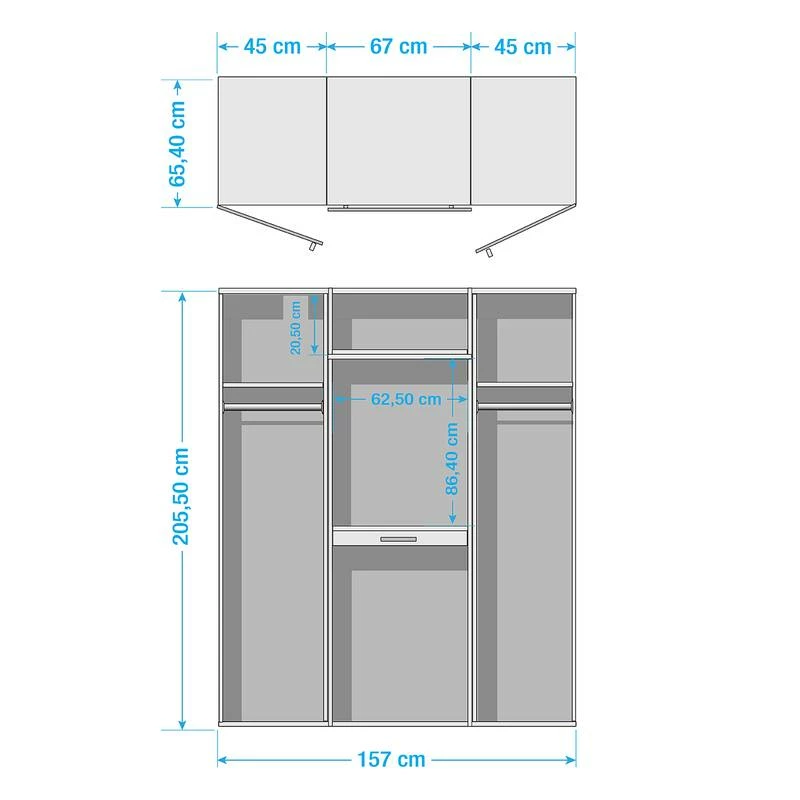 - Colonne de salle de bain (L x H x P) chaque : 45 x 205,8 x 65,4 cm