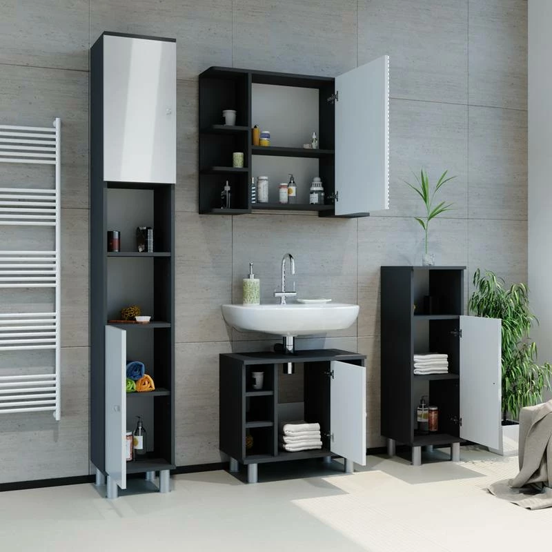 - Contenu de la livraison : • 1 x armoire de salle de bainsremarque : la décoration n’est pas comprise dans la livraison.