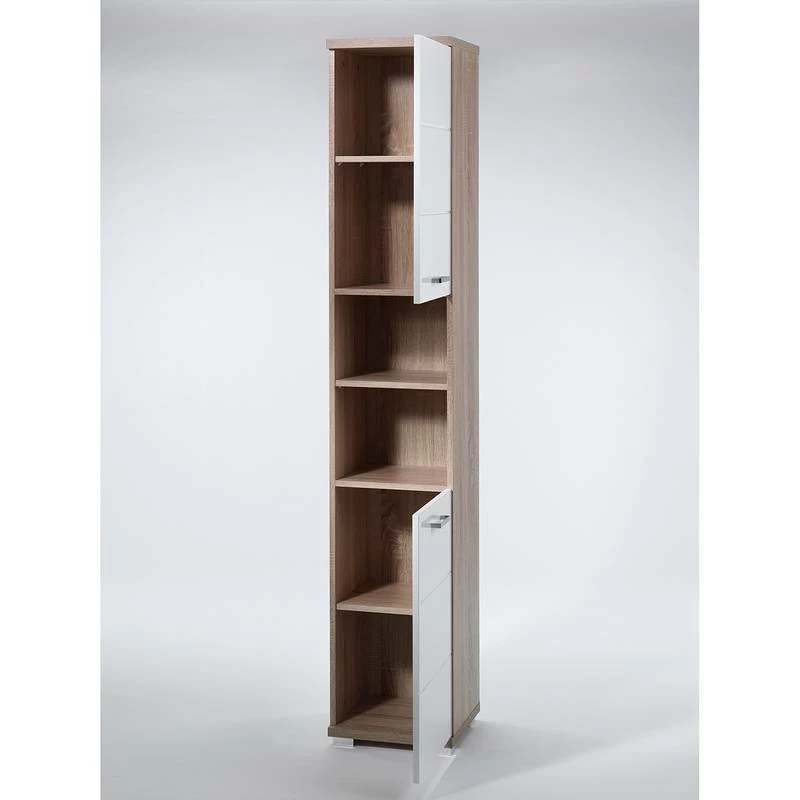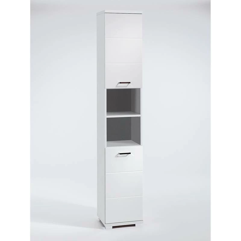 - Autres caractéristiques : Façade en MDF laqué blanc brillant avec fraisage de rainures, poignées métalliques chromées, panneaux supérieur et inférieur de 25 mm d’épaisseur