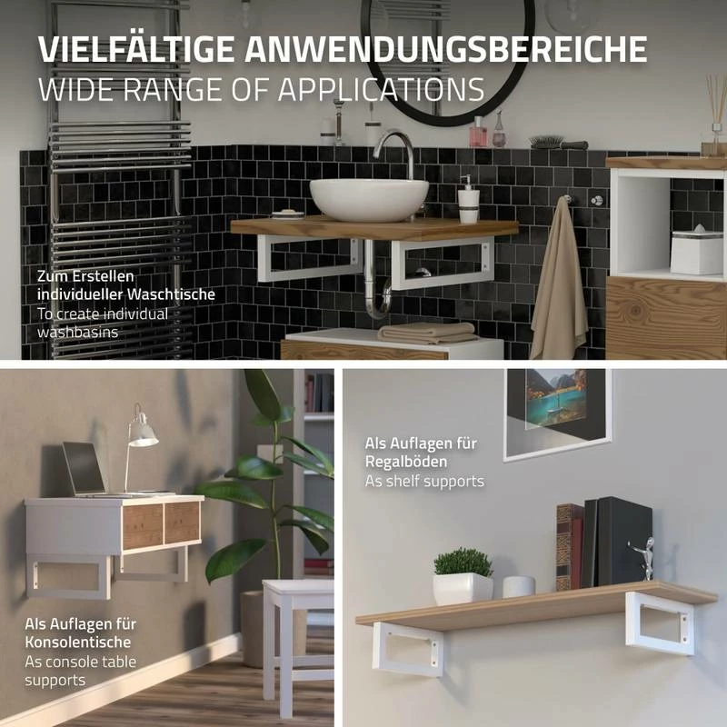 - Contenu de la livraison : 2x console murale Avec matériel de montage (8 x vis, 8 x rondelles, 4 x chevilles)