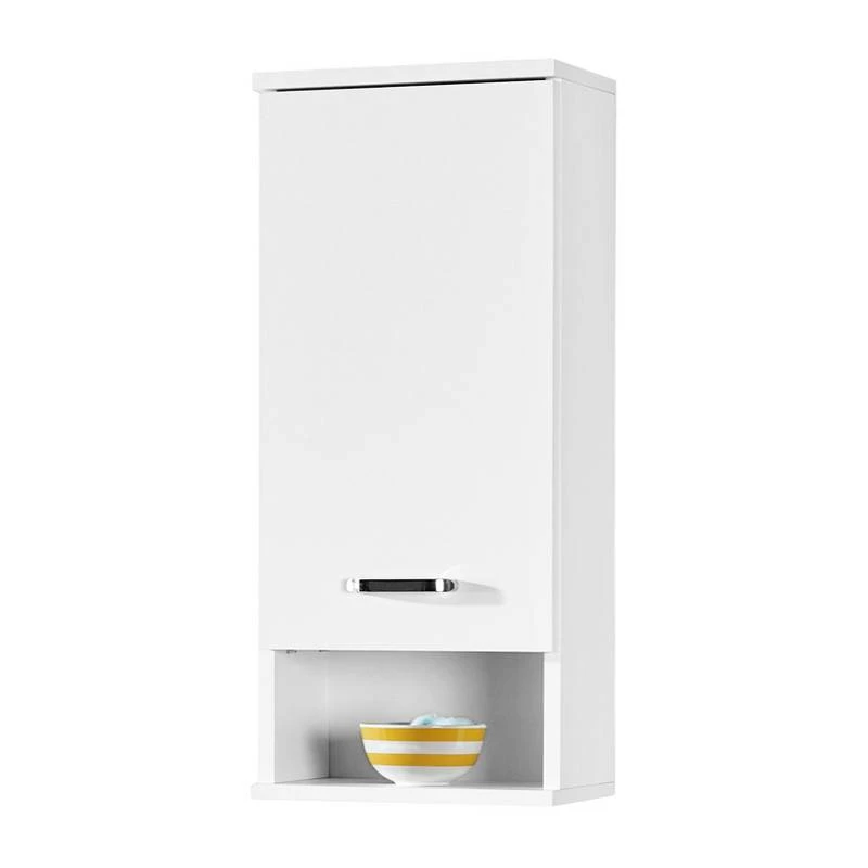 - Armoire suspendue : 1 porte renfermant 1 tablette d’étagère, 1 compartiment ouvert
