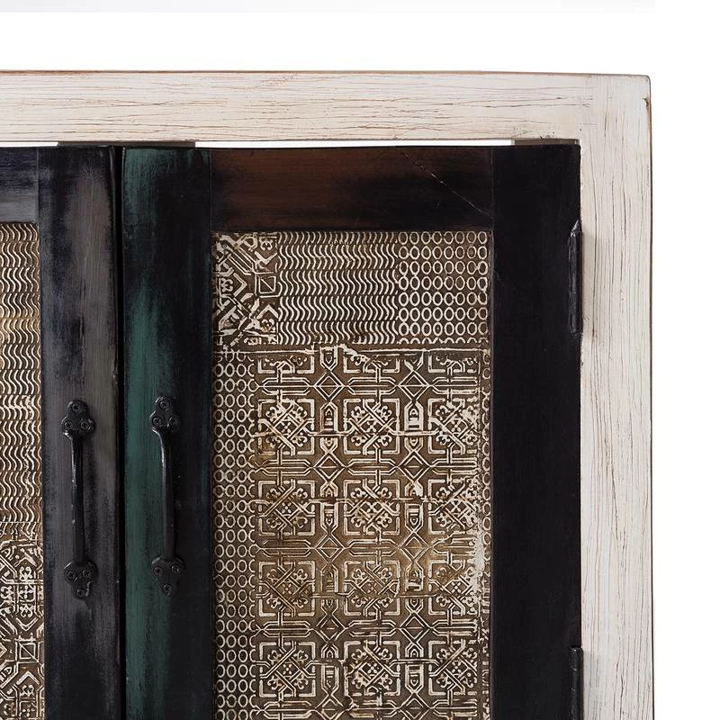 - Façade et côtés : MDF (panneau de fibres à densité moyenne) avec applications métalliques