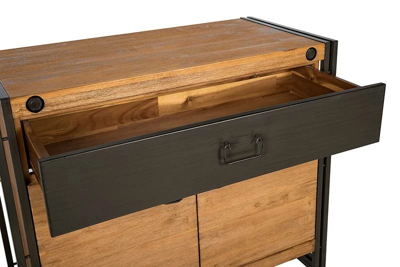 - Façade des tiroirs : MDF (panneau de fibres à densité moyenne) avec revêtement métallique enduit par poudrage