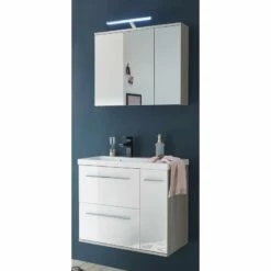 - Salle de bain comprenant 1 meuble avec vasque en fonte minérale et 1 armoire de toilette avec éclairage