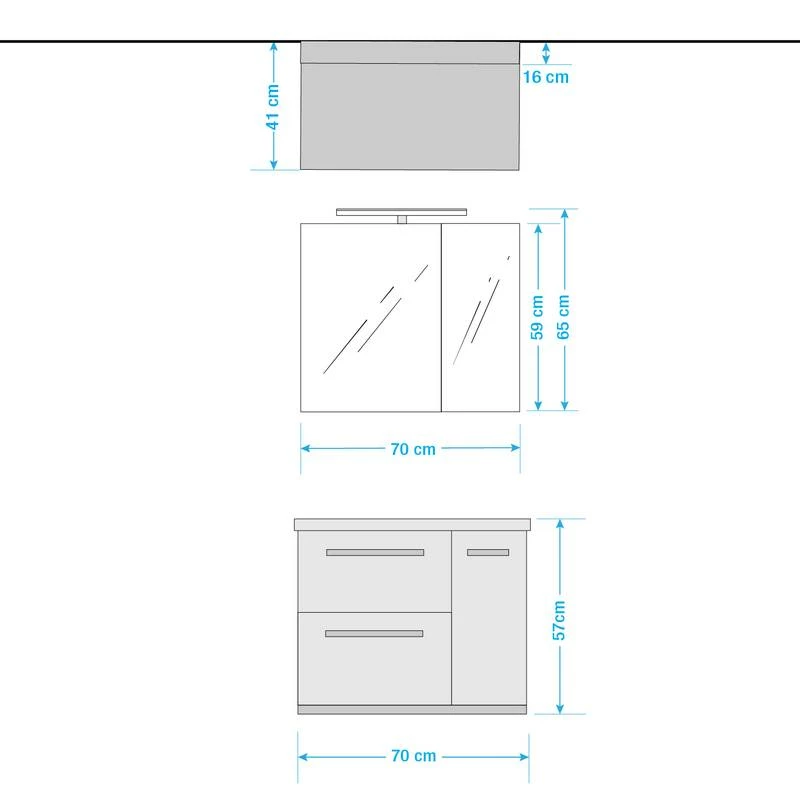 - Armoire de toilette : 70 x 65 x 16 cm