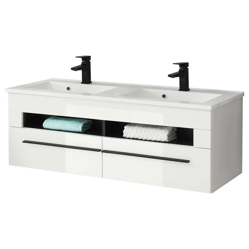 - Meuble avec vasque double (L x H x P) : 120 x 43 x 45 cm