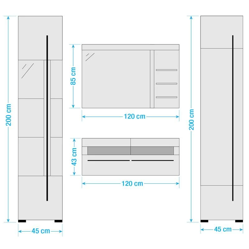 - Colonne de salle de bain (L x H x P) chaque : 45 x 200 x 35 cm