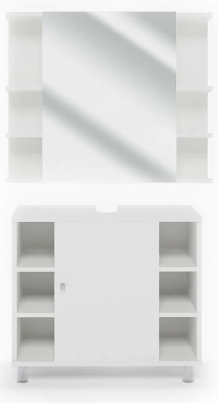 - Contenu de la livraison : • 1x armoire de toilette• 1x meuble sous-vasque Décoration non incluse
