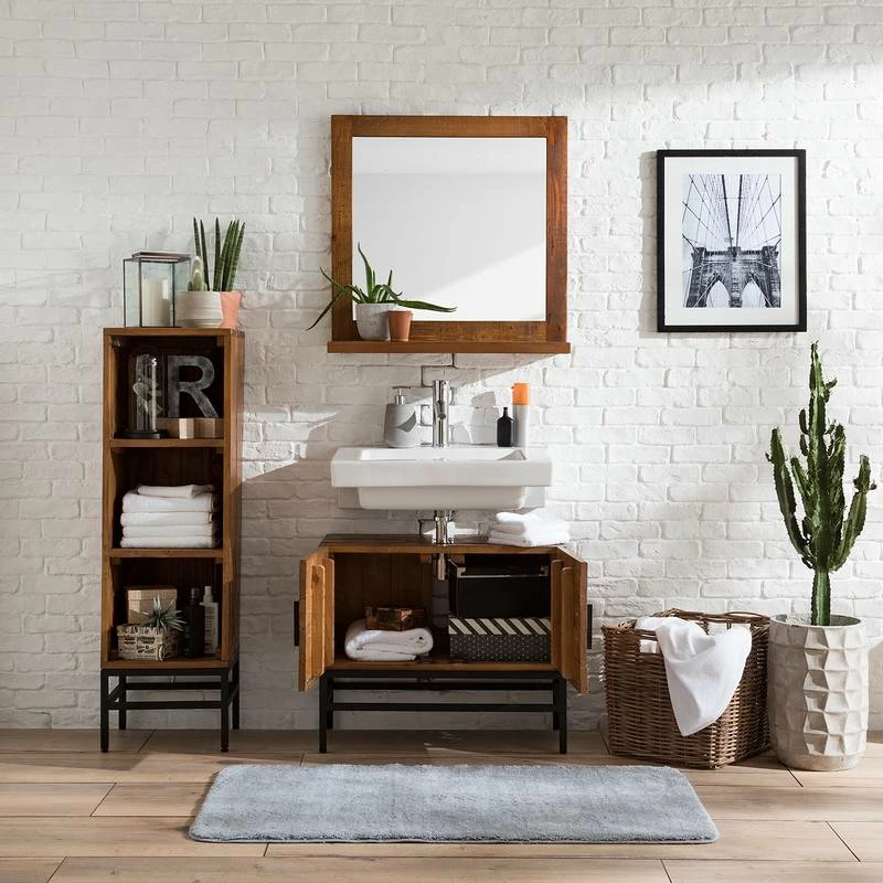 - Contenu de la livraison : 1 miroir, 1 meuble sous lavabo et 1 étagère, sans accessoires