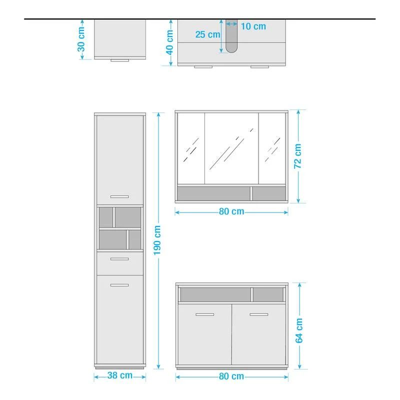 - Armoire de toilette (LxHxP) : 80 x 72 x 20 cm