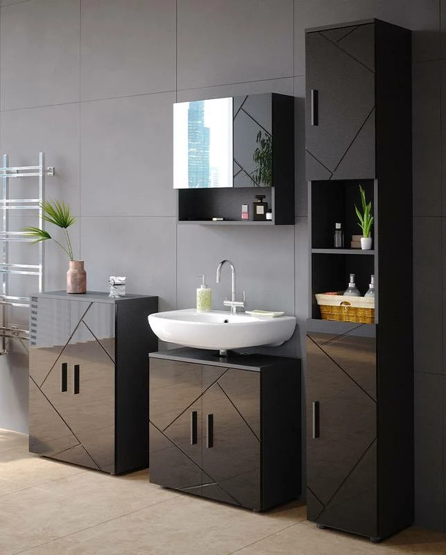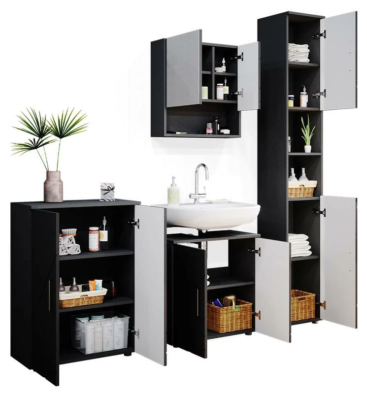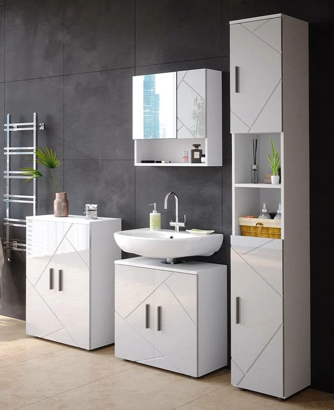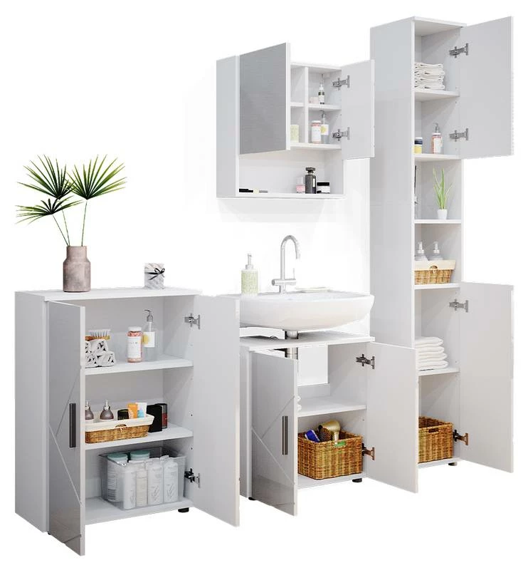 - Contenu de la livraison : • 1x armoire de toilette • 1x meuble sous-vasque • 1x meuble de salle de bains • 1x placard