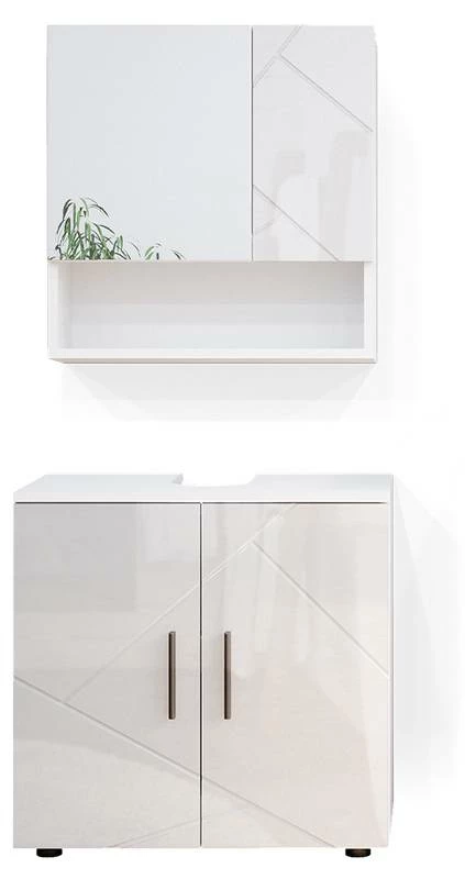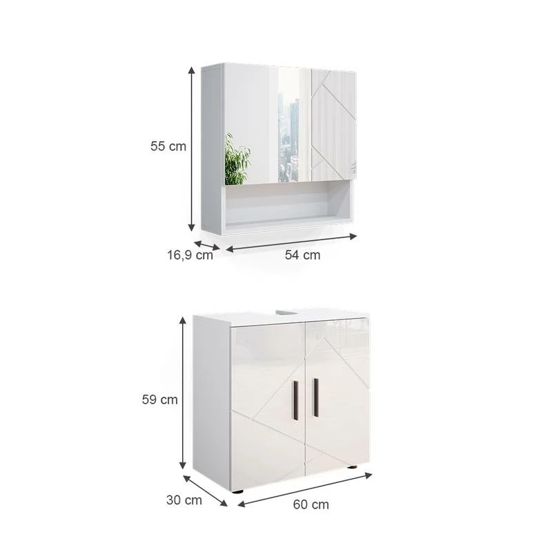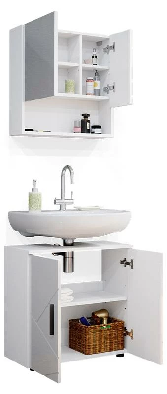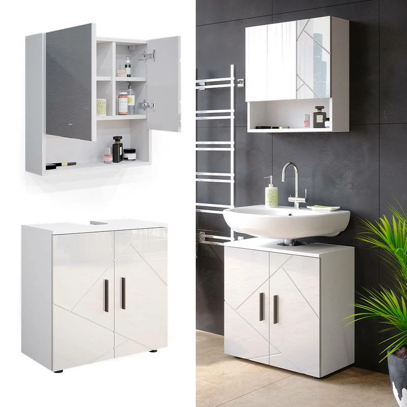 - Contenu de la livraison : • 1x armoire de toilette • 1x meuble sous-vasque Décoration non incluse