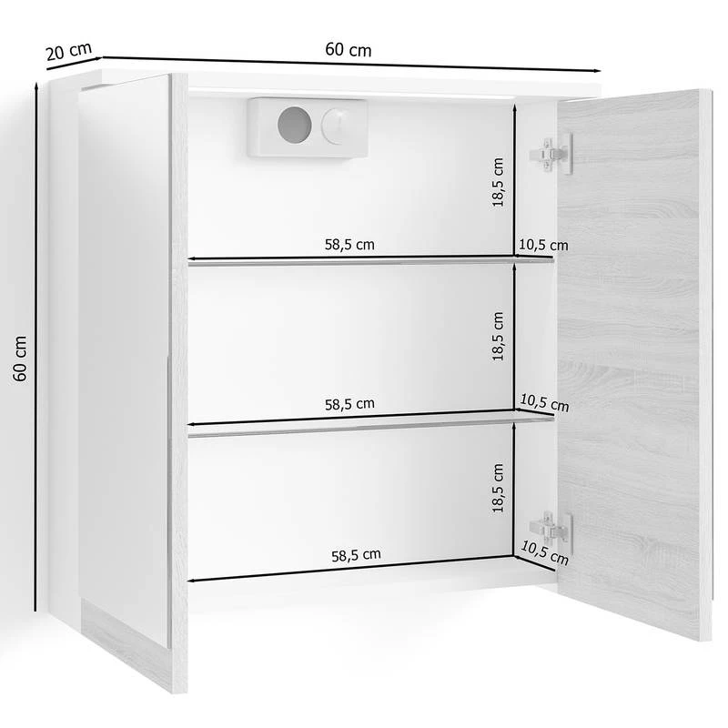 - Armoire de toilette (LxHxP) : 60 x 60 x 20 cm