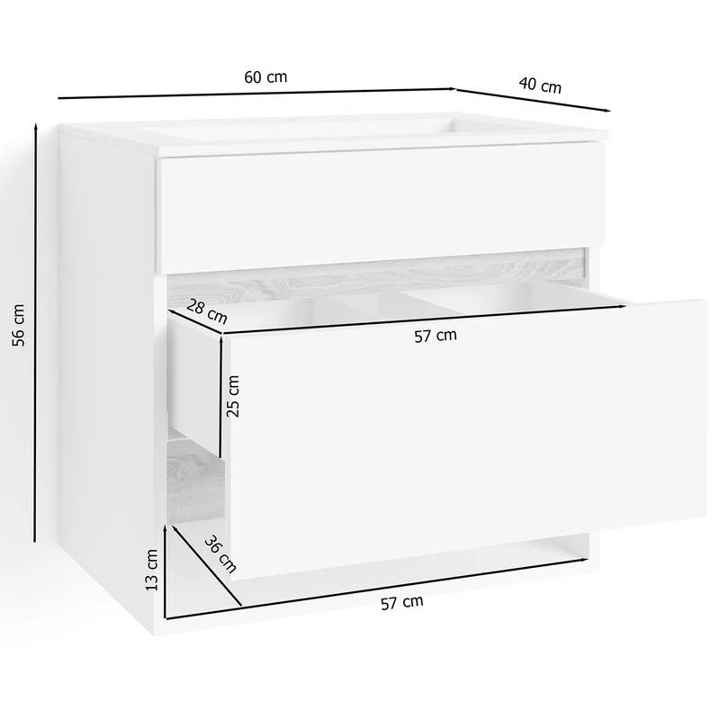 - Meuble avec vasque (LxHxP) : 60 x 56 x 40 cm