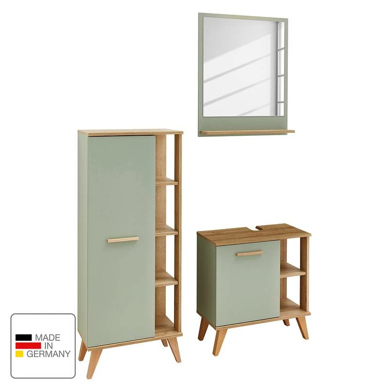 - Contenu de la livraison : Ensemble de salle de bain comprenant 1 meuble sous lavabo, 1 colonne de salle de bain et 1 miroir avec éclairage