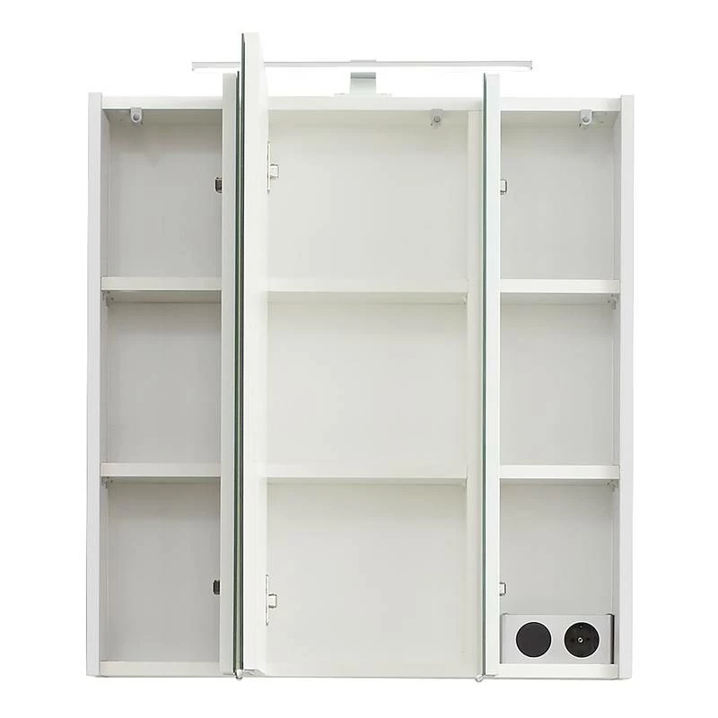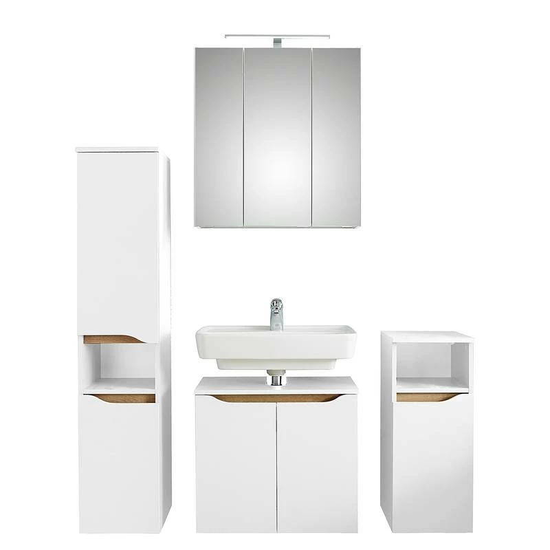 - Contenu de la livraison : Salle de bain comprenant 1 armoire de salle de bain, 1 armoire de toilette, 1 meuble sous lavabo et 1 meuble bas, avec éclairage inclus, sans pieds ni accessoires