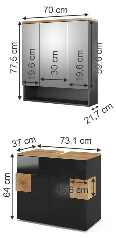- Contenu de la livraison : • 1x meuble sous-vasque• 1x armoire de toilette Décoration non incluse