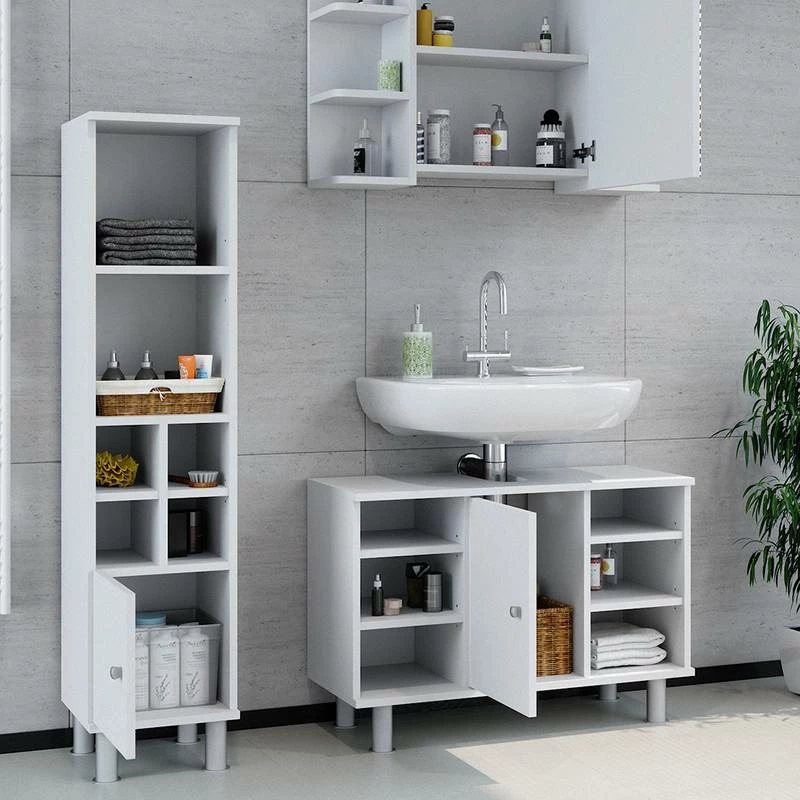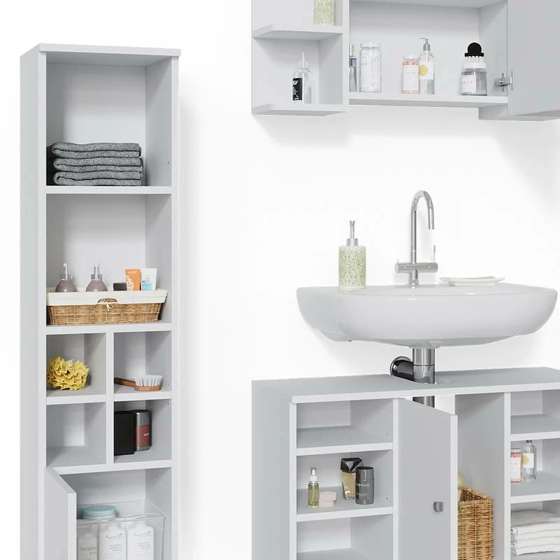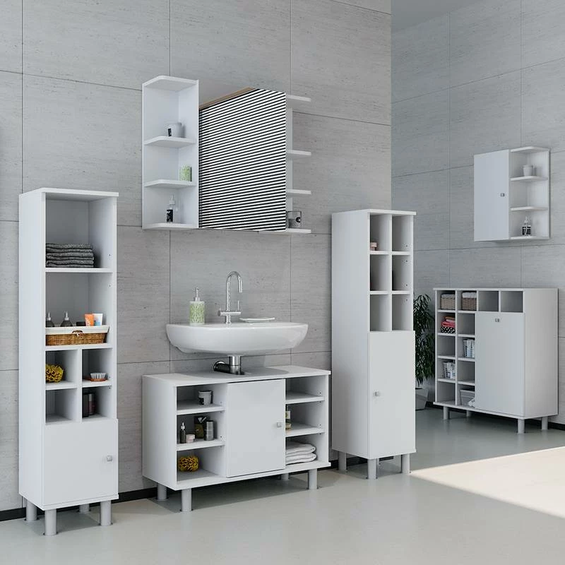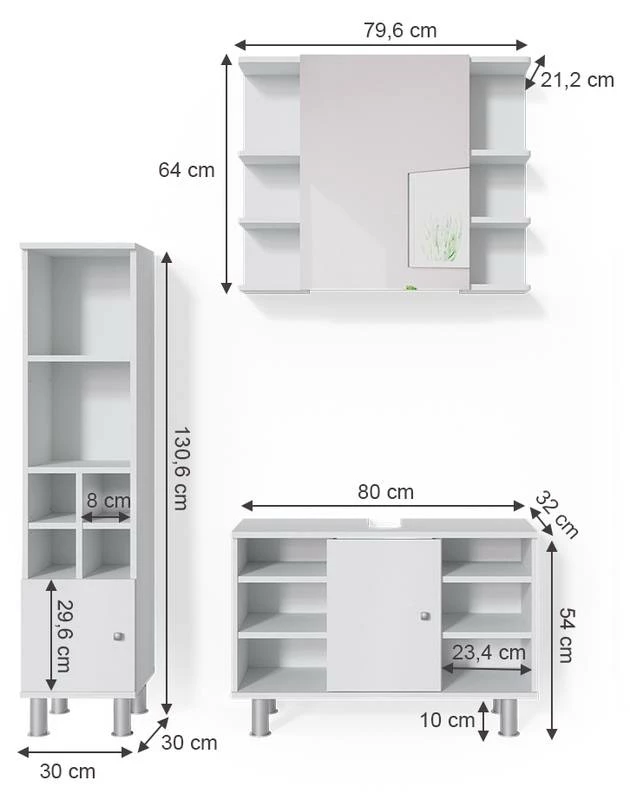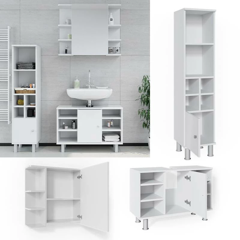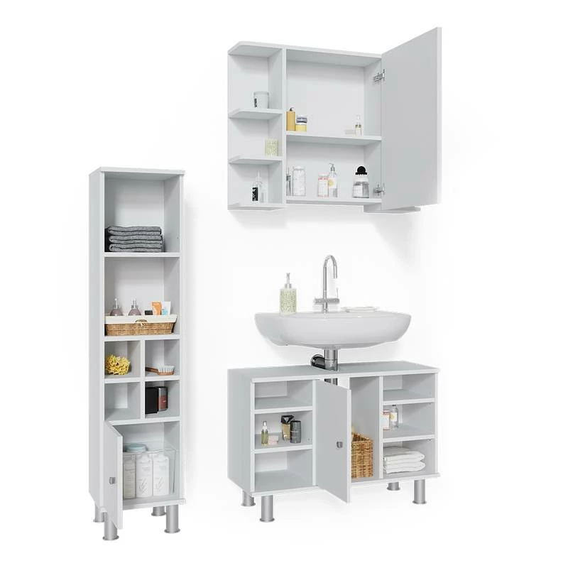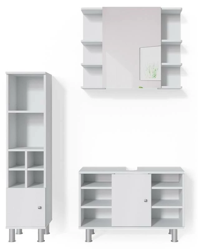- Contenu de la livraison : • 1x armoire de toilette• 1x meuble sous-vasque• 1x chiffonnier grandDécoration non incluse