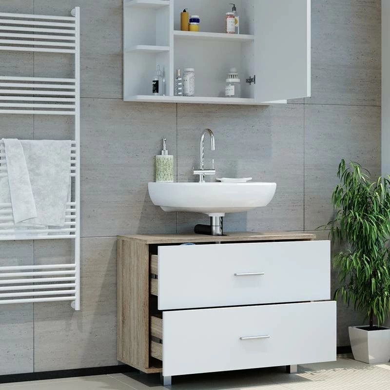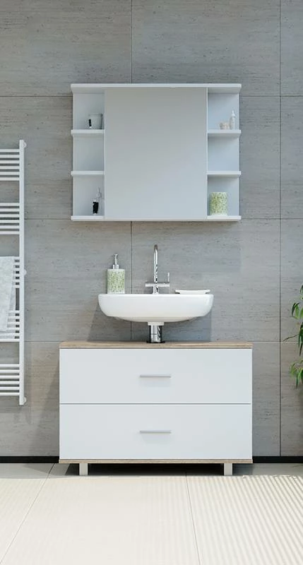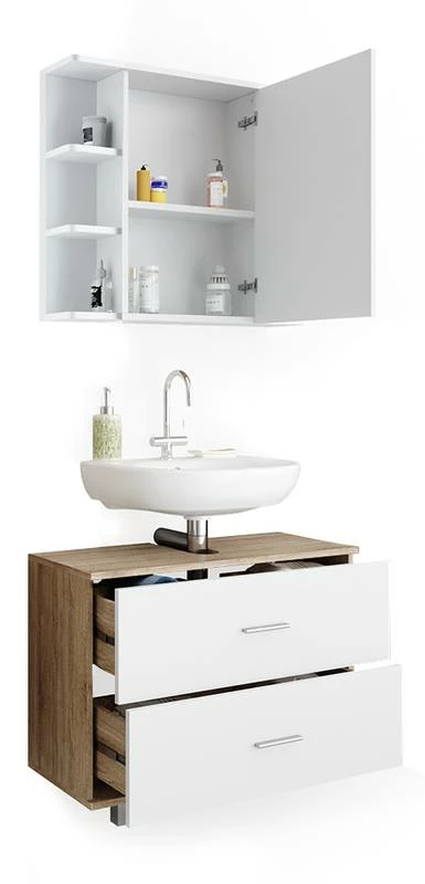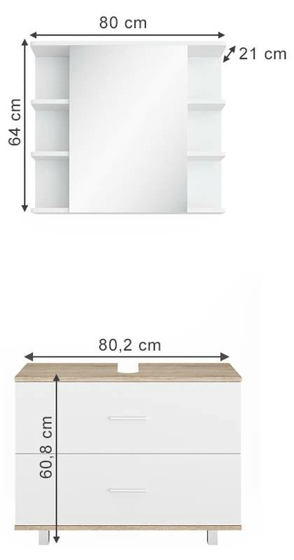 - Contenu de la livraison : • 1x armoire de toilette• 1x meuble sous-vasqueDécoration non incluse