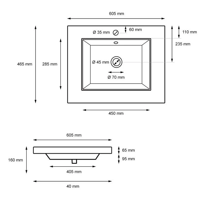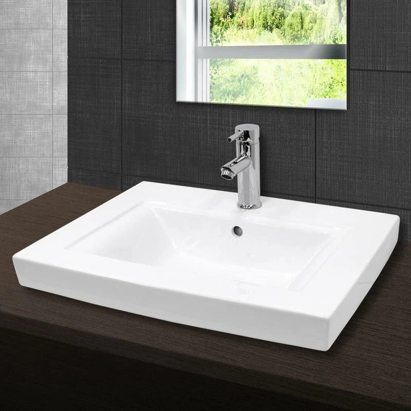 - Contenu de la livraison : Contenu de la livraison :1x lavabo encastré en céramiqueLe mitigeur, la soupape découlement et le matériel de montage ne sont pas inclus dans la livraison.