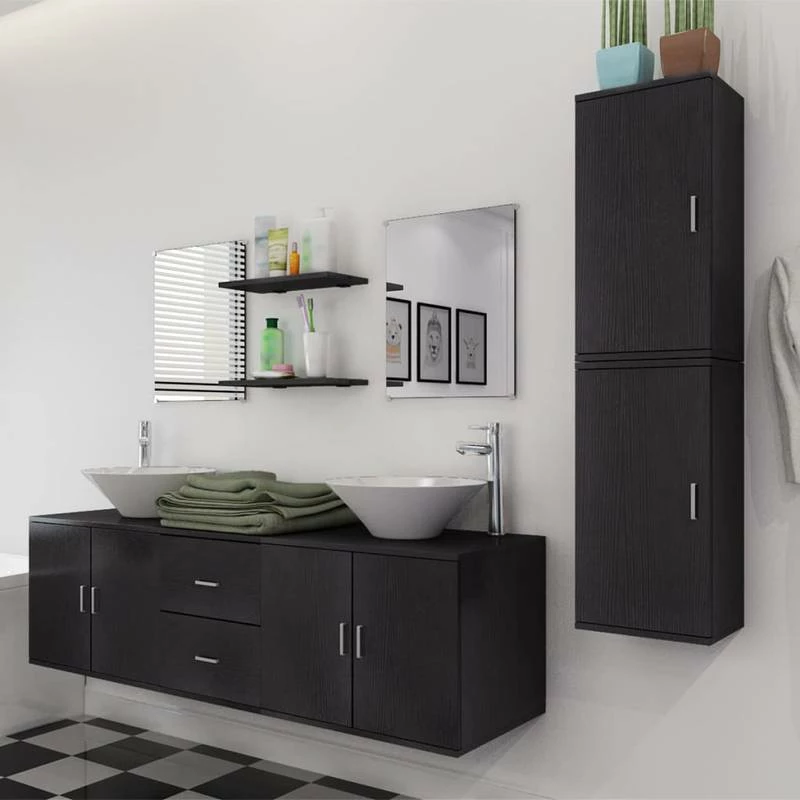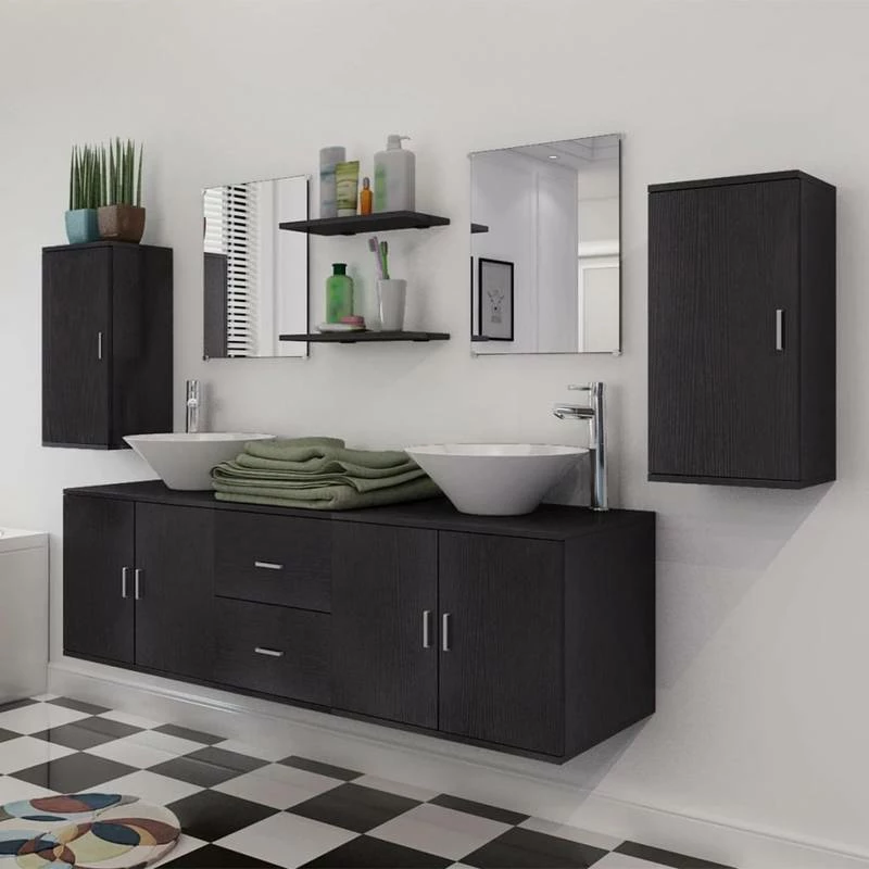 - Contenu de la livraison : Ensemble de meubles de salle de bain 150 x 130 cm Noir