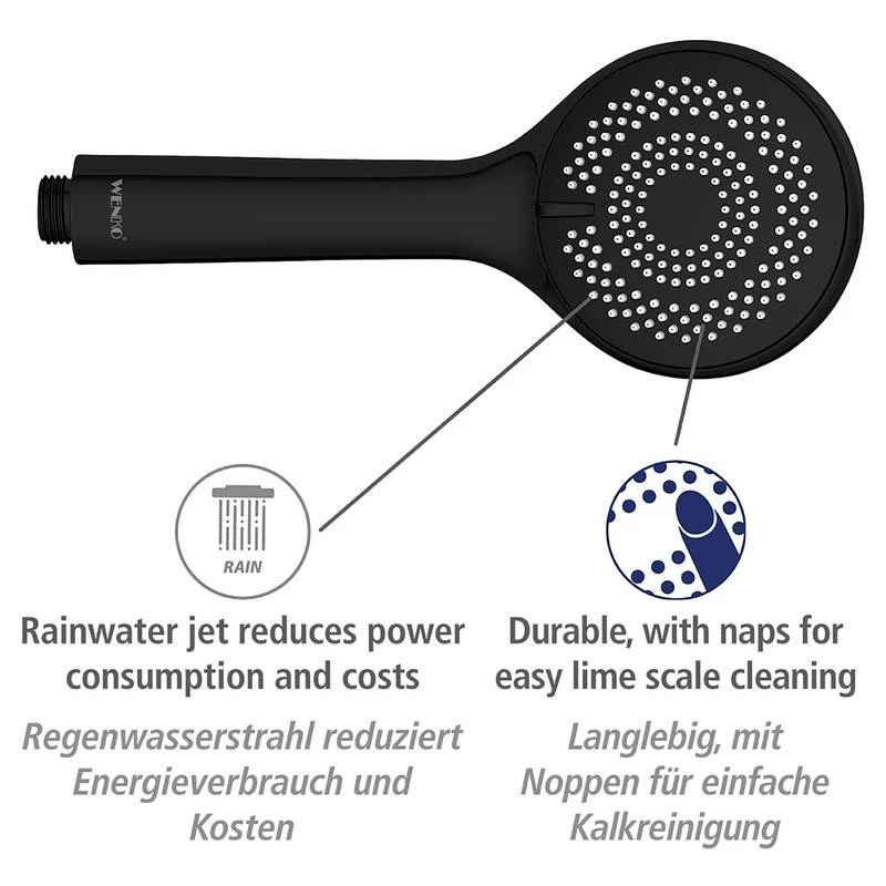 - Autres caractéristiques : La gamme innovante de pommes de douche WENKO impressionne par sa fonctionnalité, son design et sa qualité.